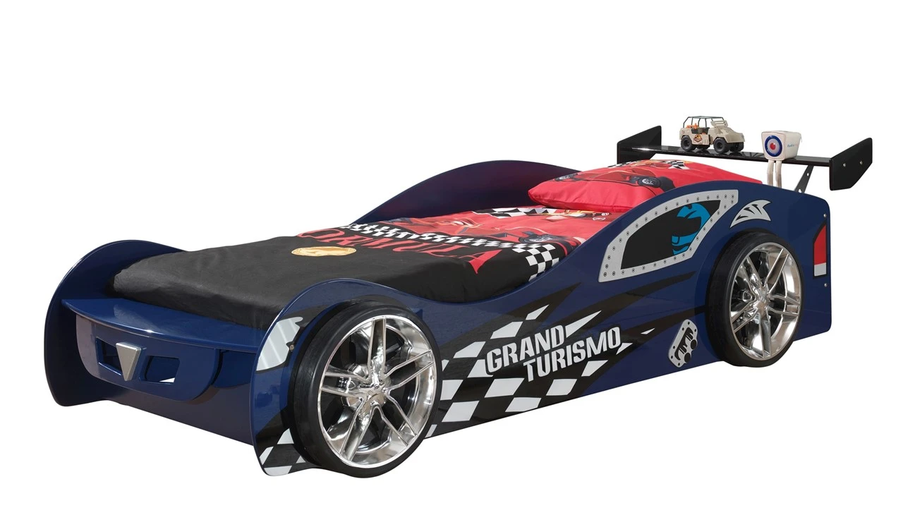 Alle kleine autofans opgelet: slapen in bed Grand Turismo van Vipack laat je droom uitkomen! Met een zwarte spoiler achter, levensechte, verchroomde wielen en zijkanten versierd met de bekende zwart/wit geblokte vlag van de racesport zal dit bed het hart van iedere autofan veroveren!