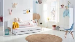 Bed Jip breid je eenvoudig uit met opbergladen of een slaaplade voor extra gemak en opbergruimte. De slaaplade zie je op foto twee. Ook zijn er nog veel andere bijpassende accessoires te krijgen uit de Flexworld collectie. Wat dacht je bijvoorbeeld van uitvalbevelilging voor kleine kinderen. Filter hiervoor op het merk Flexworld bij bedden.
