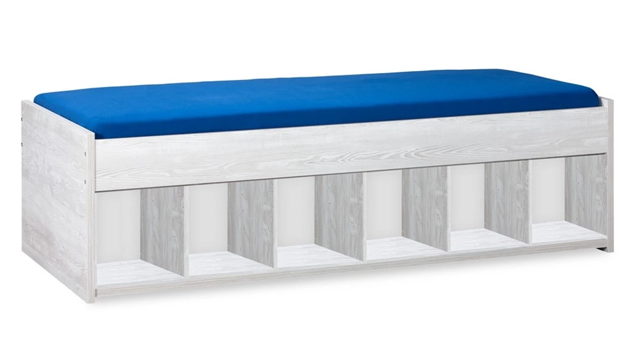 Een veelzijdig bed voor de kinder-/tienerkamer, bed Lagoon. Dit bed is extra stevig en is iets hoger waardoor het een hele fijne instaphoogte is voor kinderen. Maar wat dit bed écht speciaal maakt, net zoals de rest van de Lagoon serie, zijn de volledig te personaliseren laden en kastdeuren. Het bed wordt geleverd zonder laden zodat je kind zelf kan kiezen welke kleur(en) er onder het bed moeten komen.