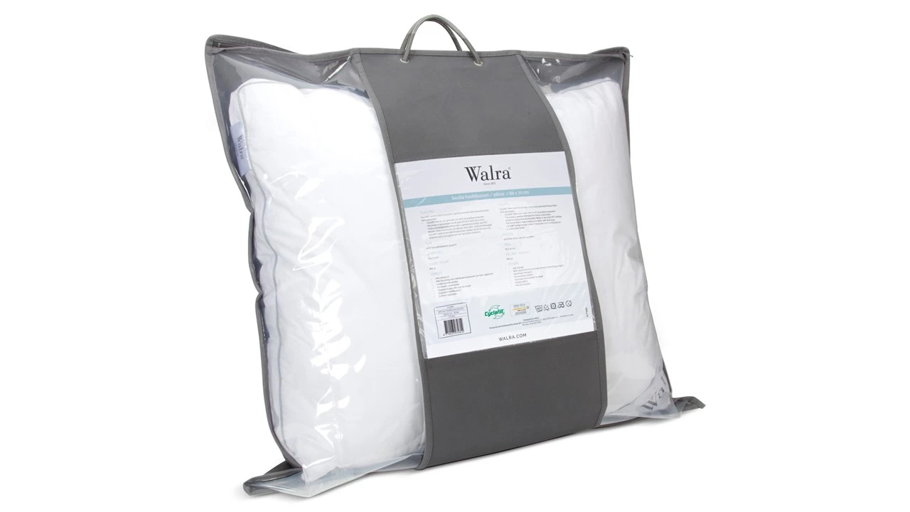 Hoofdkussen Walra Sevilla: een piramidevormig, comfortabel hoofdkussen met een gemiddelde stevigheid. Het kussen heeft een vulling van 100% gesiliconiseerde holle polyester vezels. In de vulling zit extra lucht ingesloten: hierdoor ventileert het kussen extra goed. De vulling is blijvend veerkrachtig, heerlijk zacht en anti-allergisch. Daarnaast zorgt dit kussen voor extra goede ondersteuning bij hoofd en nek. Liever iets minder vulling? Dan haal je gewoon wat vulling eruit middels de ritssluiting aan de zijkant. Het hoofdkussen is verpakt in een handige beschermtas.