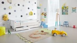 Het bed is gemaakt van kwalitatief, hoogwaardig wit grenenhout.