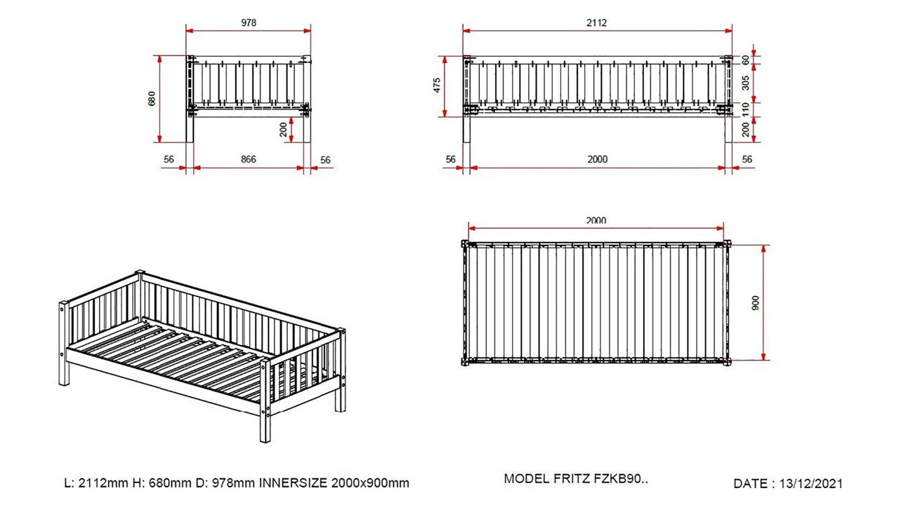 Kajuitbed Fritz van Vipack is een veelzijdig kinderbed: ‘s nachts heerlijk om in te slapen én overdag te gebruiken als bank. Leg er een paar kussentjes in en je creëert een gezellig en vrolijke plek in de kinderkamer. Kajuitbed Fritz is FSC gecertificeerd grenenhout en afgewerkt met milieuvriendelijk lak. Het minimalistische en stijlvolle design maakt dat het in elk interieur past. Aan drie kanten zijn hekjes geplaatst wat niet alleen leuk oogt maar ook een beschermende functie heeft. Wil je de ruimte onder het bed optimaal benutten? Dan kun je er ook nog slaaplade onder plaatsen. Deze kan als logeerbed gebruikt worden maar ook als extra opbergruimte. Het bed wordt geleverd inclusief lattenbodem en is geschikt voor een 90 x 200 cm matras.