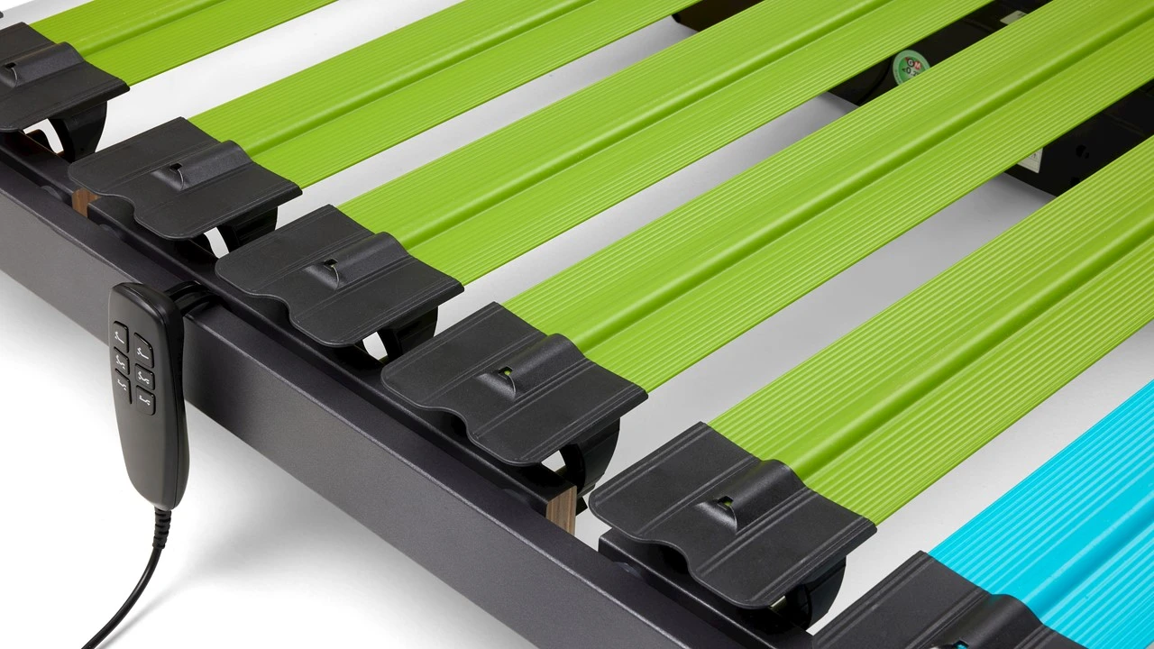 De lattenbodem koop je altijd met een standaardindeling ‘Medium’ die gemaakt is van gele, blauwe en groene latten. Door de gekleurde latten in een andere kleur volgorde in elkaar te klikken, pas je het comfort van de bodem heel eenvoudig zelf en zonder gereedschap aan. Houd je van stevige ondersteuning, dan kies je bijvoorbeeld voor de blauwe latten in het midden, de gele onderin en de groene bovenin. Ideaal!