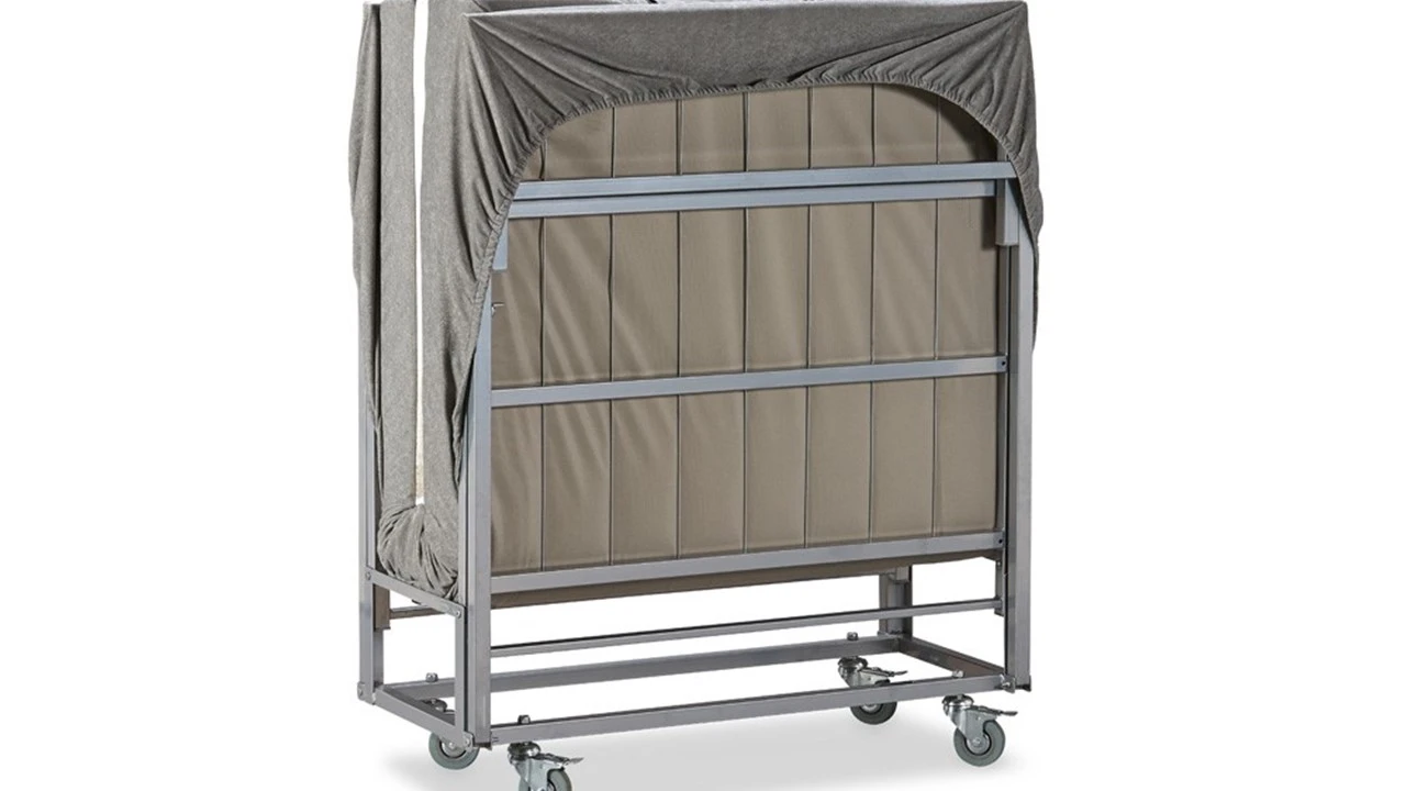 Compact, comfortabel en ook nog eens mooi! Dit handige, ruimtebesparende vouwbed klap je in één handomdraai uit als er (onverwachts) een logé komt. Het opklapbed is inclusief bodem (metalen frame) en een 13 cm dik polyether matras SG24. Uitklappen maar en zo ben je in één moeite klaar. Zodra het vouwbed uitgeklapt staat is het metalen frame niet meer zichtbaar. Ingeklapt beslaat het bed slechts een ruimte van 47 cm.